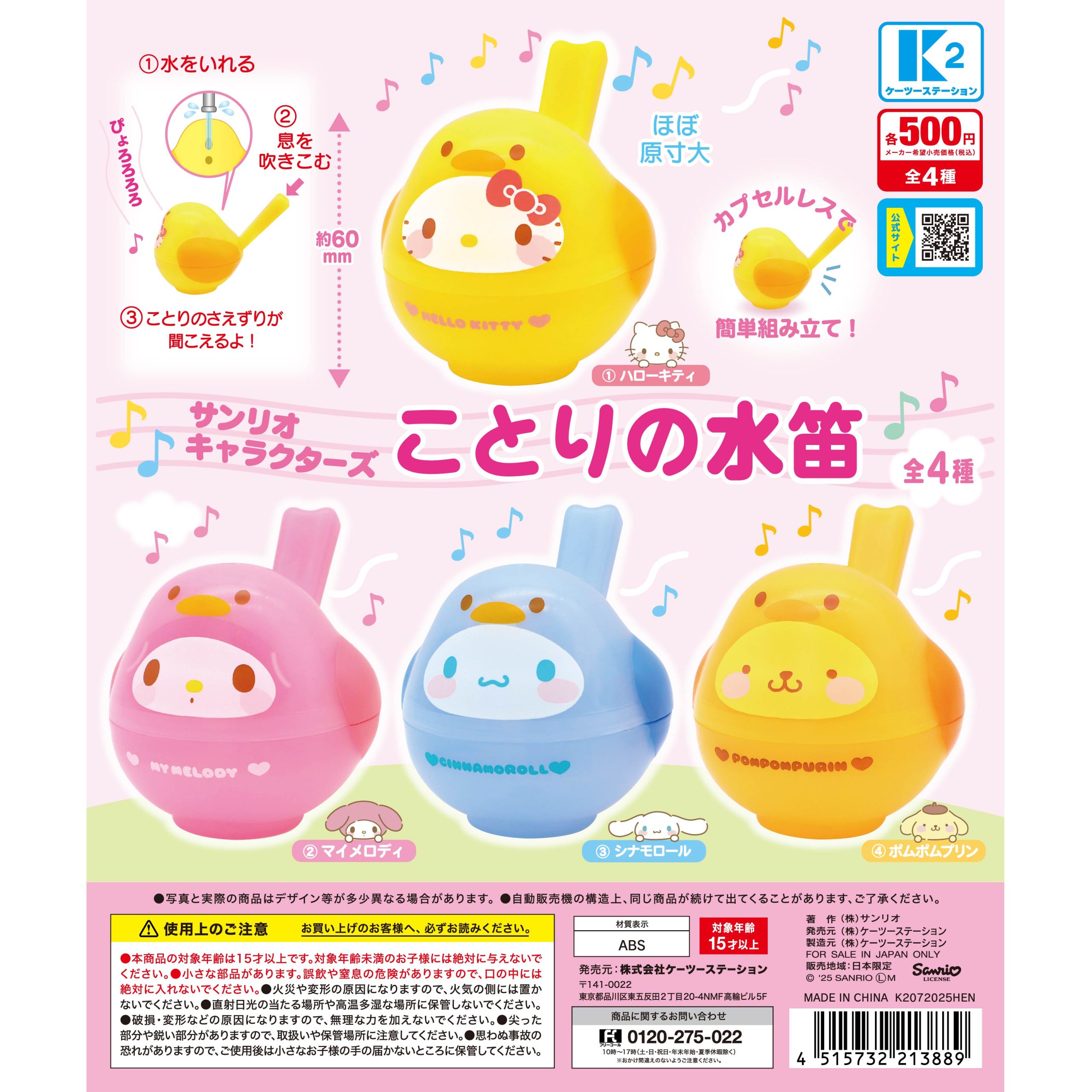 サンリオキャラクターズ リンリン鈴ぬいぐるみ〜カオハナデザイン〜 2026年3月4日 最終更新日時 : 2026年3月4日 editer@k2st 大人気の「カオハナ」デザインが色変えバージョンで登場!リンリン鳴らして楽しい鈴入りぬいぐるみです♪ 【ラインナップ】ハローキティ・マイメロディ・クロミ・シナモロール sanrio_kotorinomizubue_daishisanrio_kotorinomizubue_1sanrio_kotorinomizubue_2sanrio_kotorinomizubue_3sanrio_kotorinomizubue_4 発売日2025年7月価格(税込)500円種類数4種JANコード4515732213926本体サイズH約55×W60mmカプセル68mm対象年齢15歳以上製品素材ポリエステル・鉄・PS ※写真と実際の商品はデザイン等が多少異なる場合がこざいます。※予告なく発売日は変更になる場合がこざいますので予めこ了承ください。 X Instagram