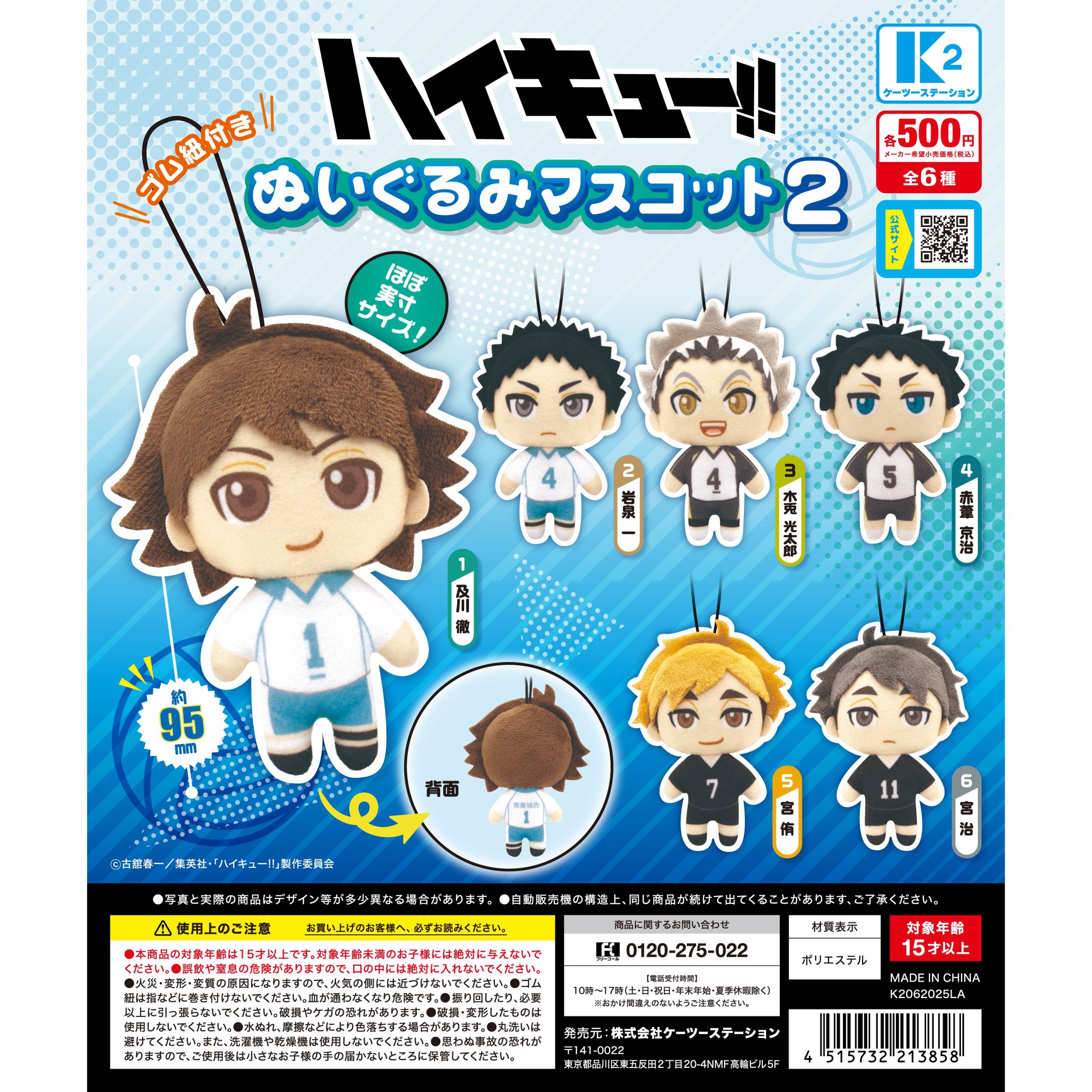 好評につきユニフォーム姿の全身マスコット第2弾登場!!人気の青葉城西、梟谷学園、稲荷崎のメンバーをラインナップ!全種ゴム紐付きで持ち歩きしやすいサイズ感!