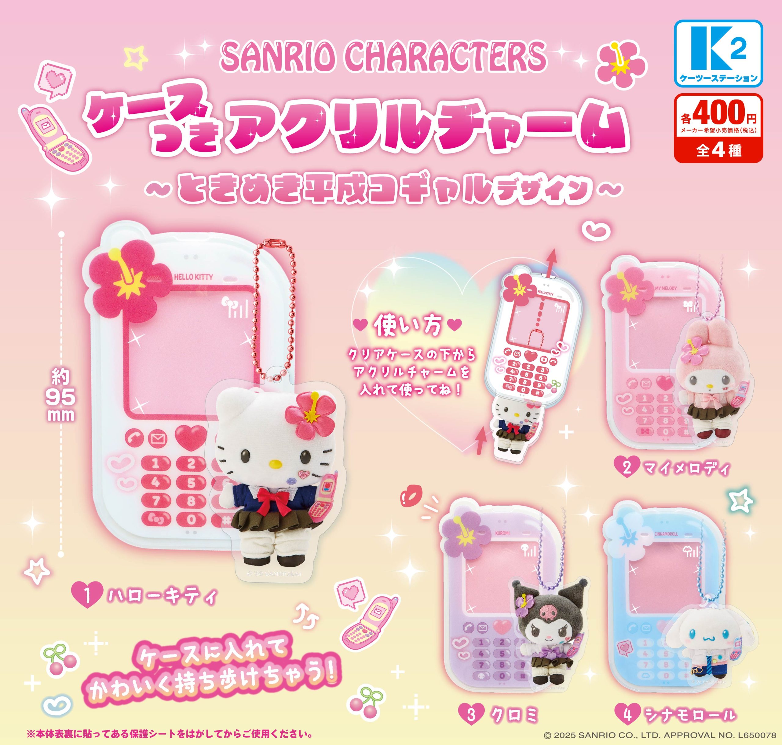 サンリオキャラクターズ ケースつきアクリルチャーム 〜ときめき平成コギャルデザイン〜 ときめき平成コギャルデザインのアクリルチャームが登場♡ ガラケーデザインのクリアケースつき!セットで使って可愛さアップ♡ 【ラインナップ】ハローキティ・マイメロディ・クロミ・シナモロール