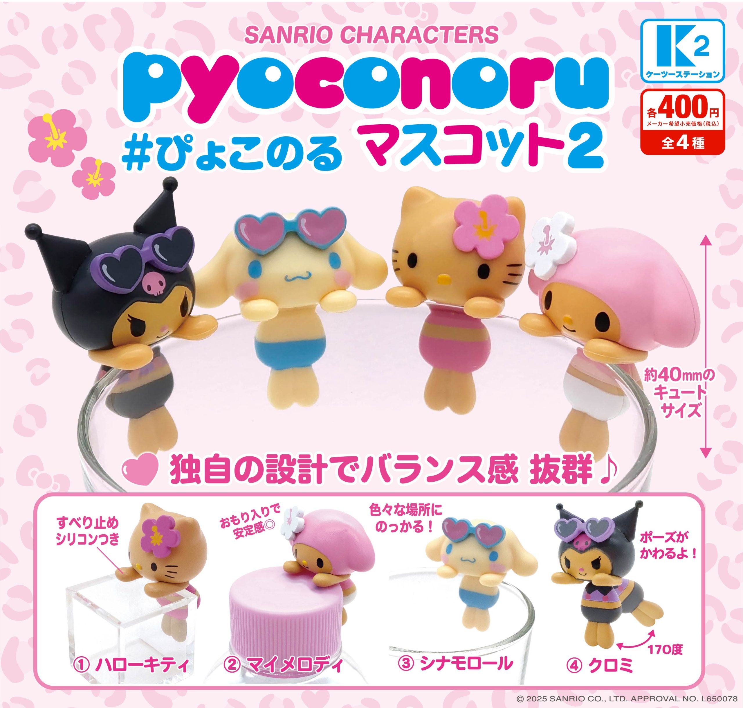 サンリオキャラクターズ ぴょこのるマスコット2 色々な場所にのっかる!「ぴょこのる」マスコット第2弾!人気の水着&日焼けバージョンで登場! 【ラインナップ】ハローキティ・マイメロディ・シナモロール・クロミ